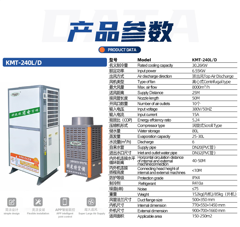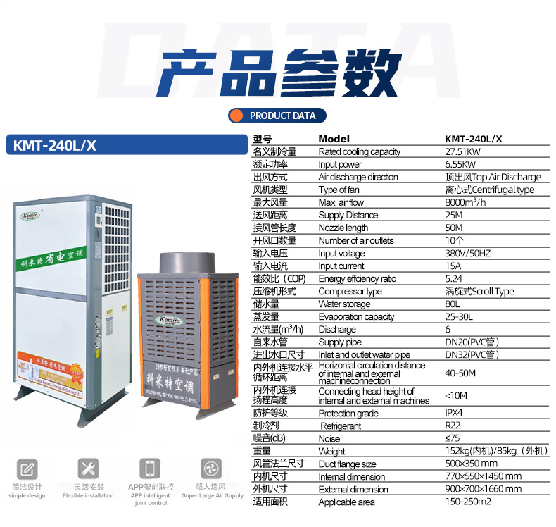 配置高性能离心风机,顶出风设计,可连接50米风管,岗位送风,精准降温。