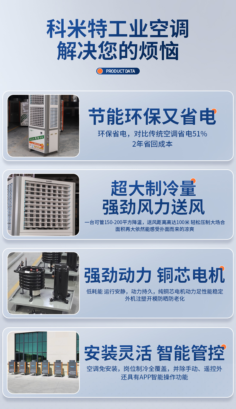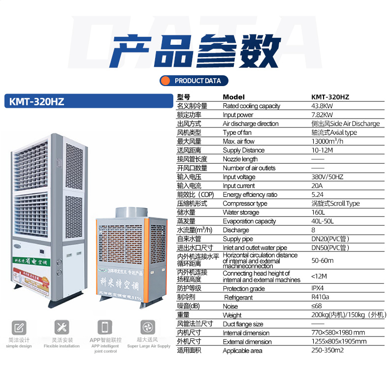 双风叶配置,上下双出风,送风量更大,降温面积,250-350平方,高效降温。